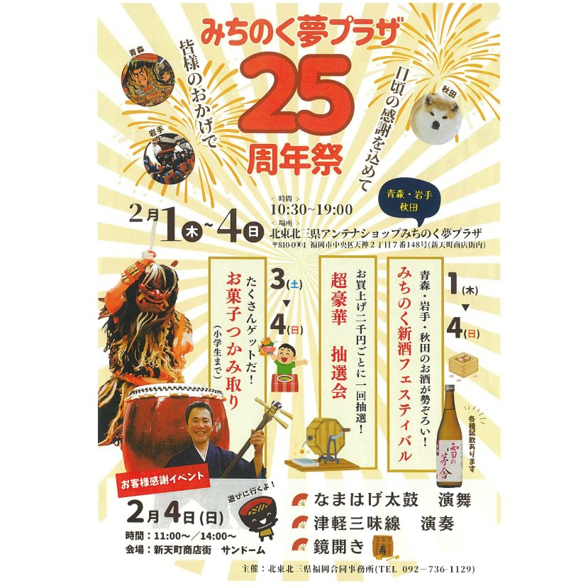 天神・新天町の「みちのく夢プラザ」で25周年祭をやっています。2/4(日)まで。