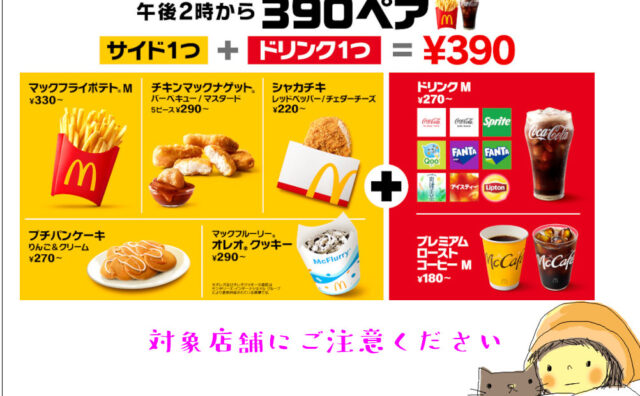 【マクドナルド】店舗限定!午後2時からの「390(サンキュー)ペア」