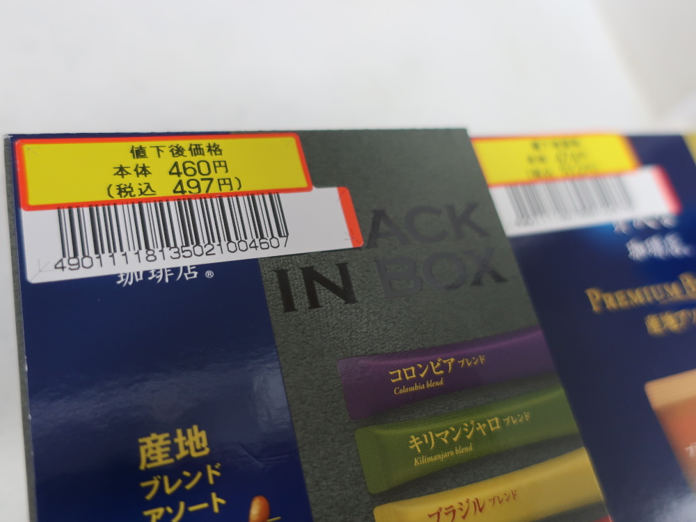 この週末、原のサンリブでインスタントコーヒーや紅茶の一部が、商品の入れ替えのため安くなっていました。