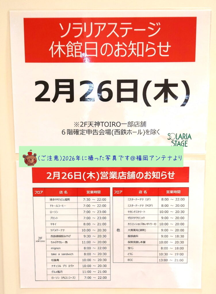| 3 | 火 | サロン・デュ・ショコラ 2026 博多阪急「バレンタインフェスタ」 天神地下街 休館日 |
